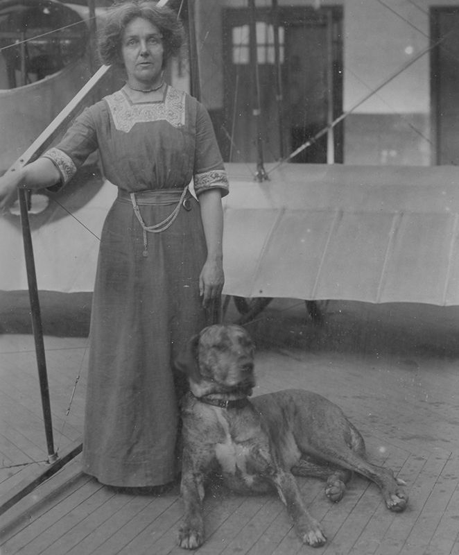 This was not the only unusual aspect of Hilda Hewlett. She must have stood out from her peers, with her short, slicked down hair, her ruddy complexion, her unusual clothes and often driving a fast car accompanied by her Great Dane Kroshka (the Russian word meaning baby, or crumb – a splendid name for a Great Dane!).
