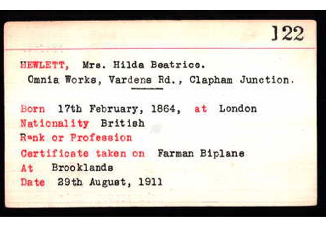 On 29 August 1911, at Brooklands, Hilda Hewlett became the first woman in the UK to earn a pilot's licence when she received certificate No.122 from the Royal Aero Club after completing the test in her biplane. Other names famous in aviation, that flew with the Hewlett and Blondeau School included Tommy Sopwith and Geoffrey de Havilland.